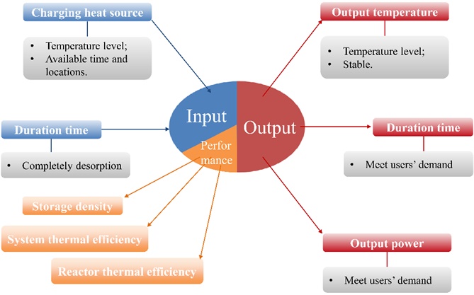 作者首先总结了传统物理吸附剂、新型多孔材料(MOF等)、化学吸附剂和复合吸附剂的吸附储热性能和研究成果;接着比较了基础的开式和闭式系统的储热性能,并总结和描述了新型的高性能工作循环,如双模式闭式跨季节储热系统和两级溶液吸收系统;之后总结了目前研究者们在开式系统,闭式固体吸附系统和溶液吸收系统中采用的改善整体性能的先进的设计策略;最后,作者提出了评价吸附储热系统的运行性能的关键参数,包括输入参数(充热热源的温区及可利用时间和场所),输出参数(温区、是否稳定、持续时长和输出功率)和性能评价参数(储热密度、系统热效率和反应床热效率),并汇总了文献报道的典型的开式和闭式吸附储热系统的上述参数。其中,作者总结了吸附储热系统的三种输出温度曲线的形状,并根据文献报道的数据分析了输入参数对输出温度的影响。