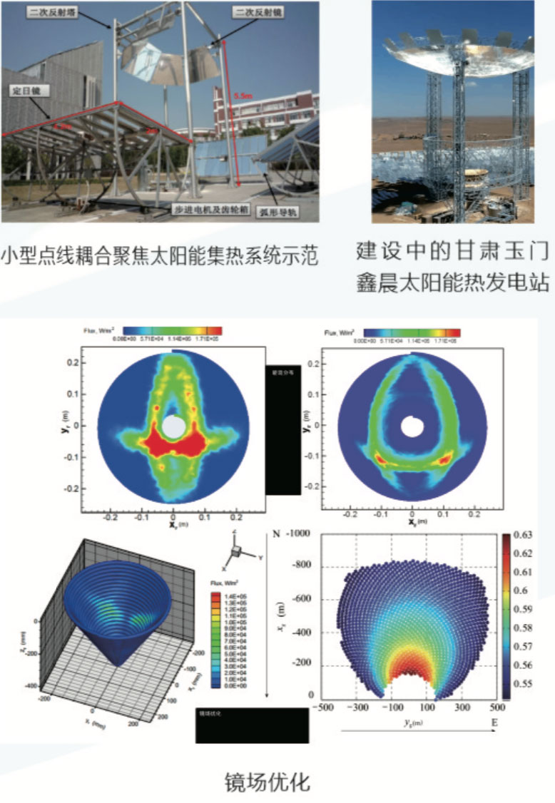 中心成果《点、线耦合聚焦反射式菲涅尔式聚光集热原理》在上海晶电(江苏鑫晨)应用实施在日肃玉门建设了全球首个50MW二次反射式太阳能电站。